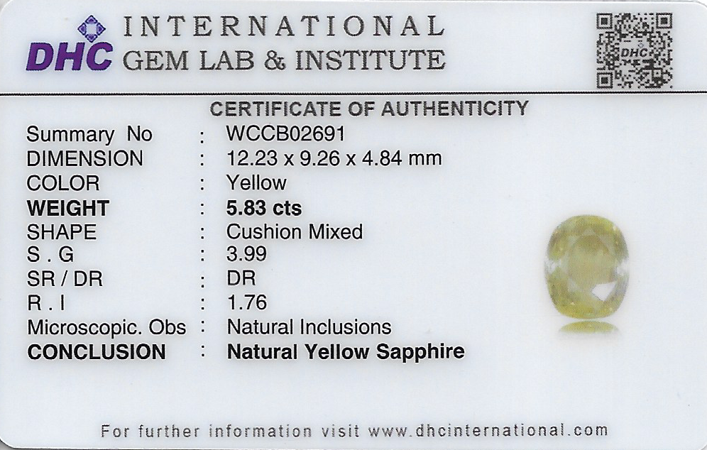 Natural Yellow Sapphire (Pushparag) weighing 5.83 carats In Cushion from Sri Lanka (Ceylon)