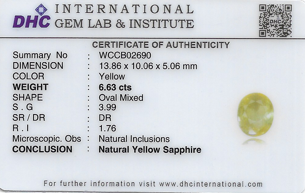 Yellow Sapphire (Pushparag) 14x10 MM 6.63 carats