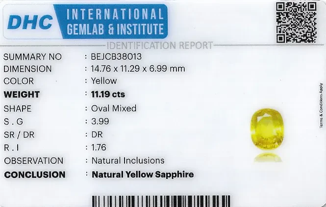 Yellow Sapphire (Pushparag) 15x11 MM 11.19 carats