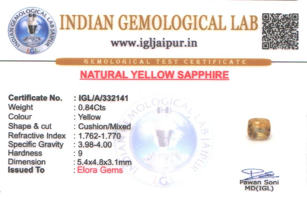 Natural Yellow Sapphire (Pushparag) weighing 0.84 carats In Cushion from Sri Lanka (Ceylon)