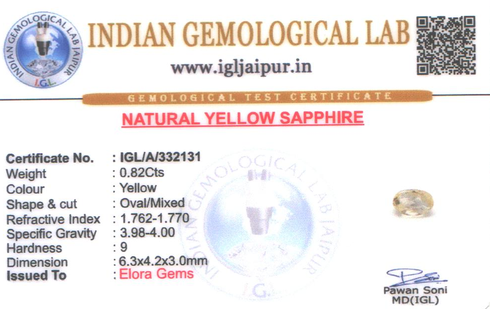 Yellow Sapphire (Pushparag) 6x4 MM 0.82 carats