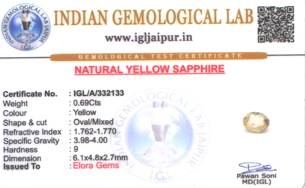 Natural Yellow Sapphire (Pushparag) weighing 0.69 carats In Oval from Sri Lanka (Ceylon)