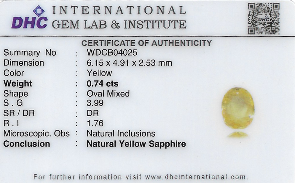 Natural Yellow Sapphire (Pushparag) weighing 0.74 carats In Oval from Sri Lanka (Ceylon)