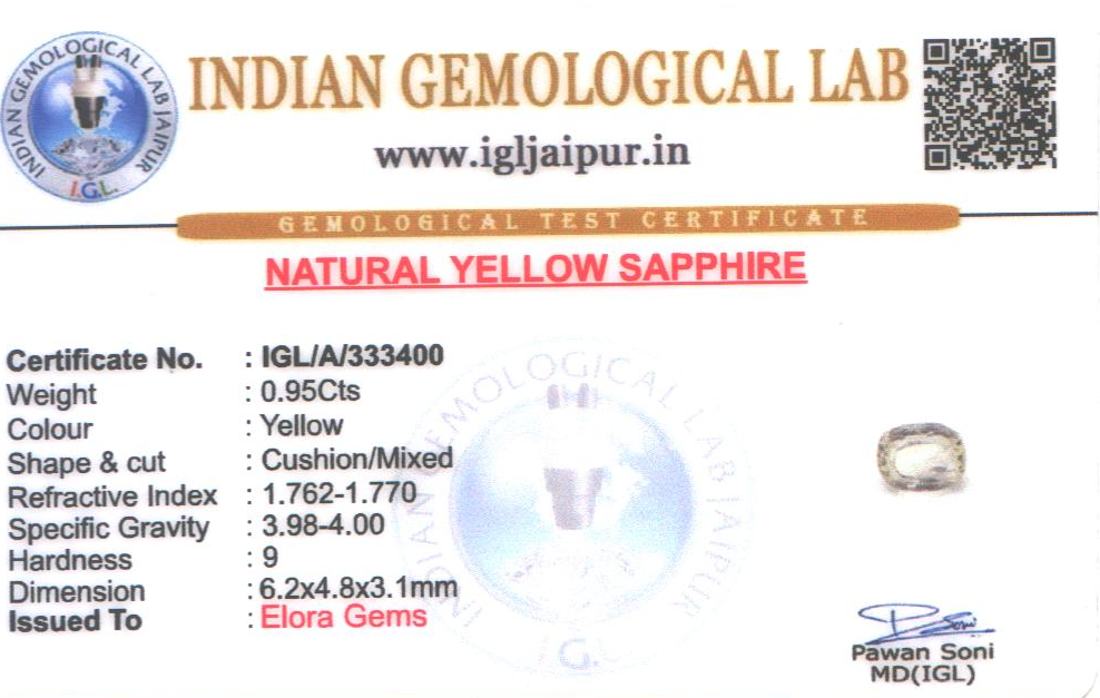 Natural Yellow Sapphire (Pushparag) weighing 0.95 carats In Cushion from Sri Lanka (Ceylon)