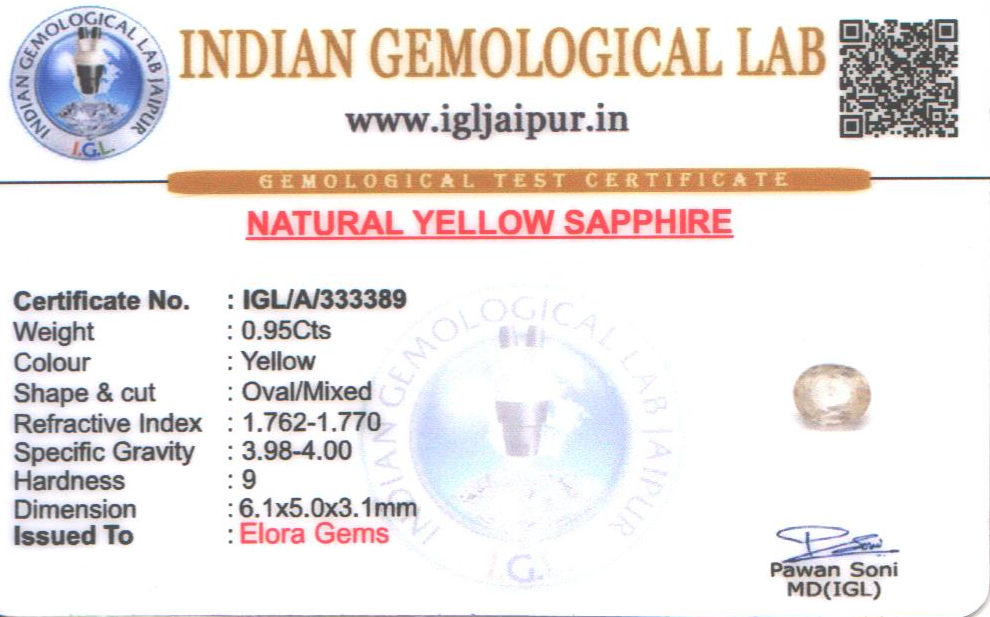 Natural Yellow Sapphire (Pushparag) weighing 0.95 carats In Oval from Sri Lanka (Ceylon)