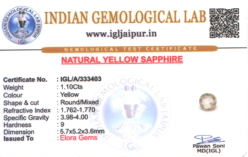 Natural Yellow Sapphire (Pushparag) weighing 1.1 carats In Round from Sri Lanka (Ceylon)