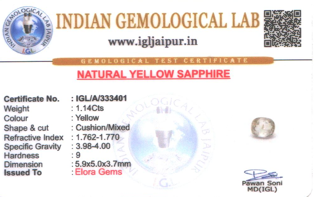 Natural Yellow Sapphire (Pushparag) weighing 1.14 carats In Cushion from Sri Lanka (Ceylon)
