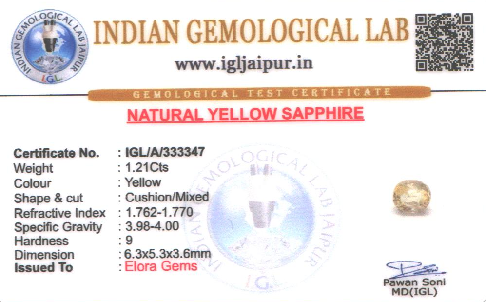 Natural Yellow Sapphire (Pushparag) weighing 1.21 carats In Cushion from Sri Lanka (Ceylon)