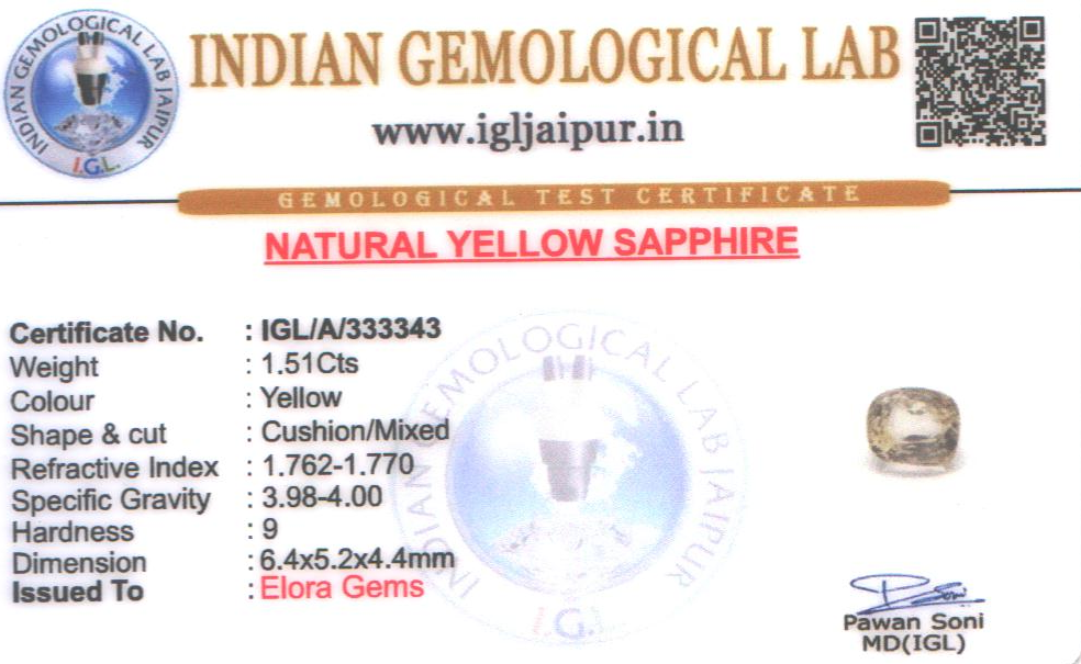 Natural Yellow Sapphire (Pushparag) weighing 1.51 carats In Cushion from Sri Lanka (Ceylon)