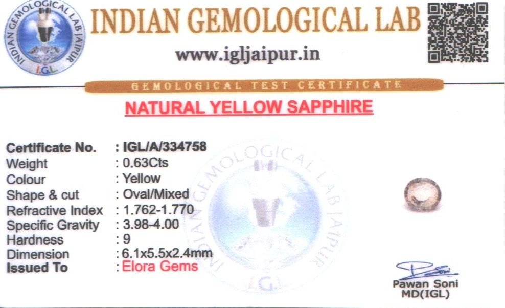 Natural Yellow Sapphire (Pushparag) weighing 0.63 carats In Oval from Sri Lanka (Ceylon)