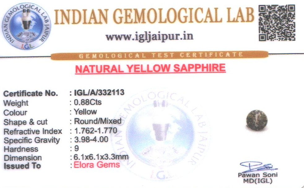 Natural Yellow Sapphire (Pushparag) weighing 0.88 carats In Round from Sri Lanka (Ceylon)