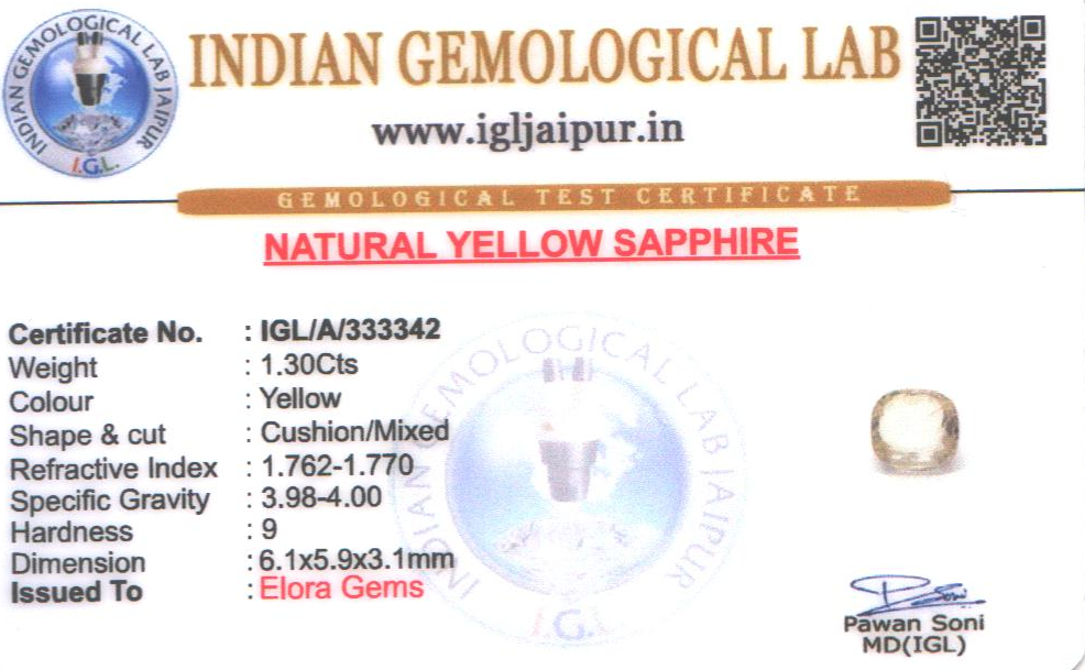 Natural Yellow Sapphire (Pushparag) weighing 1.3 carats In Cushion from Sri Lanka (Ceylon)
