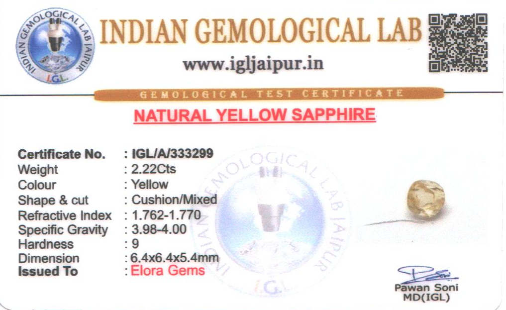 Natural Yellow Sapphire (Pushparag) weighing 2.22 carats In Cushion from Sri Lanka (Ceylon)
