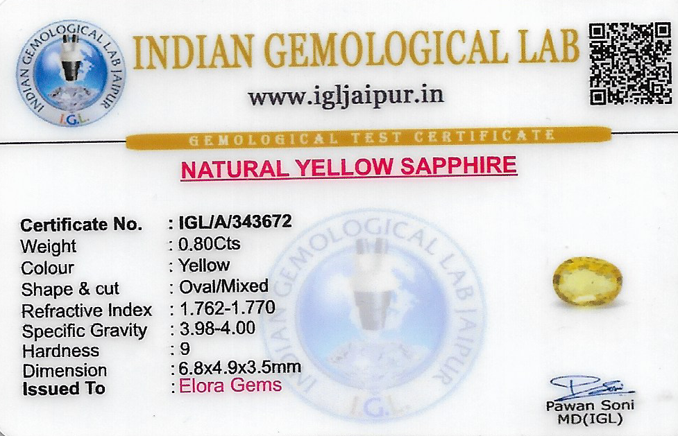 Natural Yellow Sapphire (Pushparag) weighing 0.8 carats In Oval from Thailand