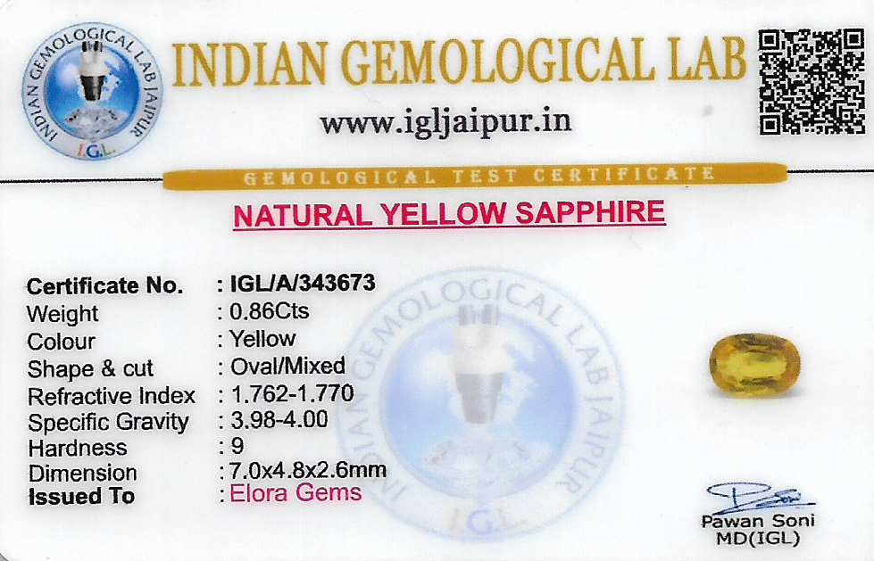 Natural Yellow Sapphire (Pushparag) weighing 0.86 carats In Oval from Thailand
