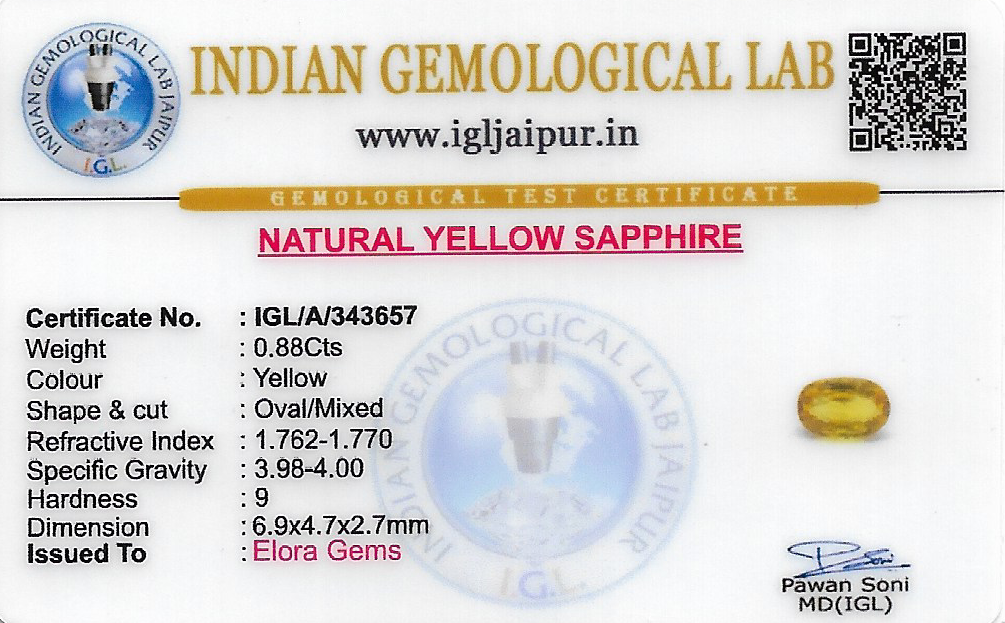 Natural Yellow Sapphire (Pushparag) weighing 0.88 carats In Oval from Thailand