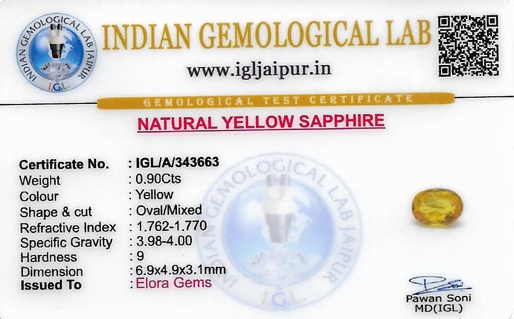 Natural Yellow Sapphire (Pushparag) weighing 0.9 carats In Oval from Thailand
