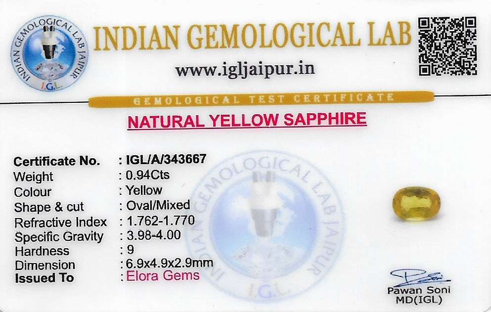 Natural Yellow Sapphire (Pushparag) weighing 0.94 carats In Oval from Thailand
