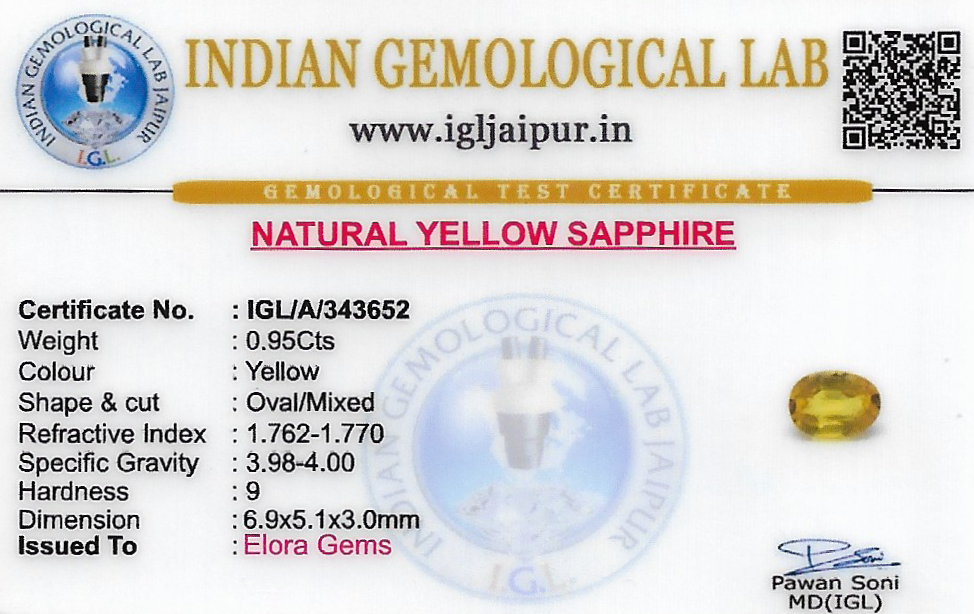 Natural Yellow Sapphire (Pushparag) weighing 0.95 carats In Oval from Thailand