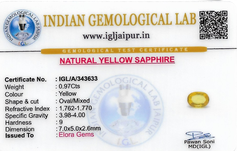 Natural Yellow Sapphire (Pushparag) weighing 0.97 carats In Oval from Thailand