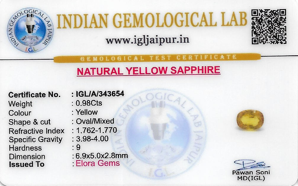 Natural Yellow Sapphire (Pushparag) weighing 0.98 carats In Oval from Thailand