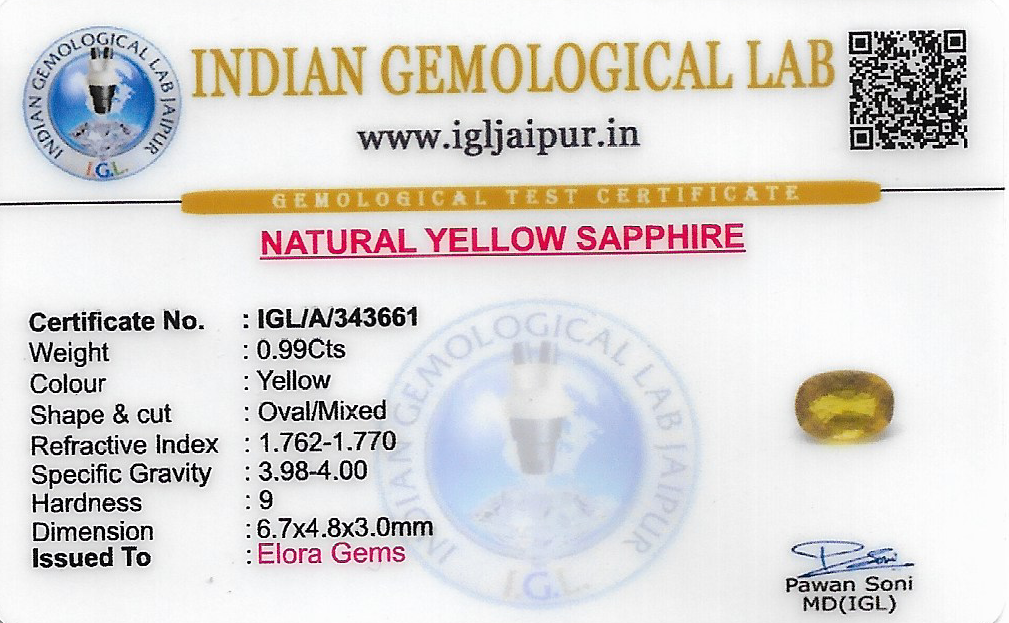 Natural Yellow Sapphire (Pushparag) weighing 0.99 carats In Oval from Thailand
