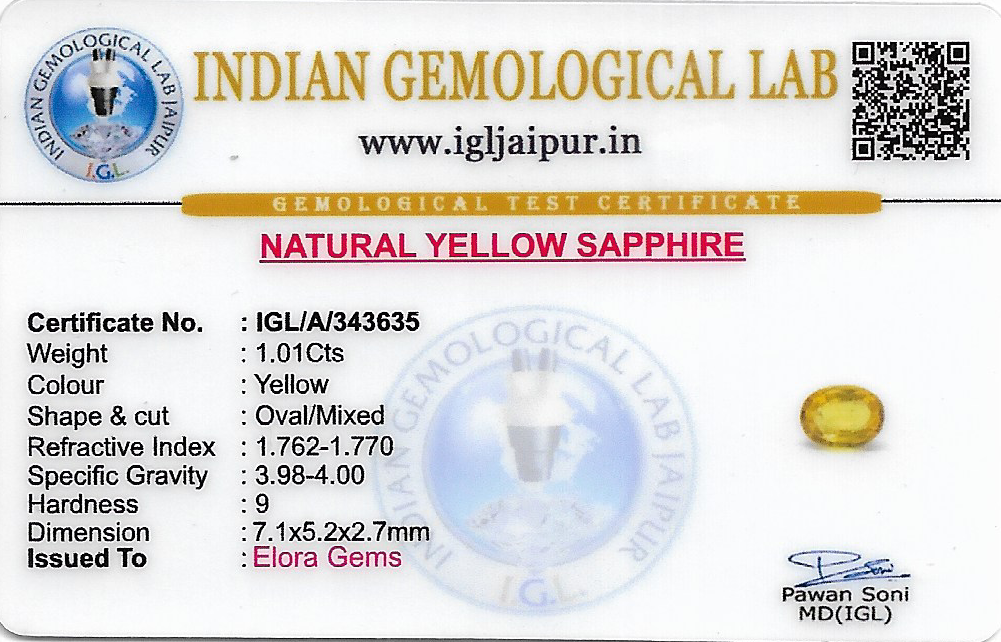 Natural Yellow Sapphire (Pushparag) weighing 1.01 carats In Oval from Thailand