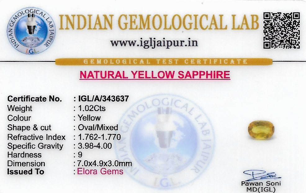 Natural Yellow Sapphire (Pushparag) weighing 1.02 carats In Oval from Thailand