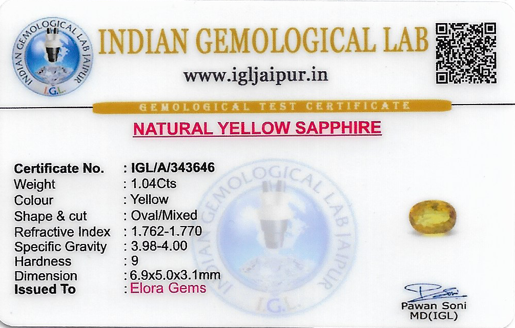 Natural Yellow Sapphire (Pushparag) weighing 1.04 carats In Oval from Thailand