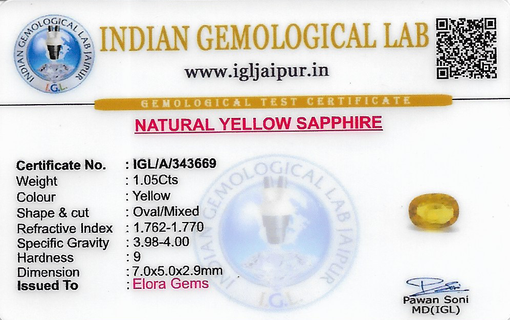 Natural Yellow Sapphire (Pushparag) weighing 1.05 carats In Oval from Thailand