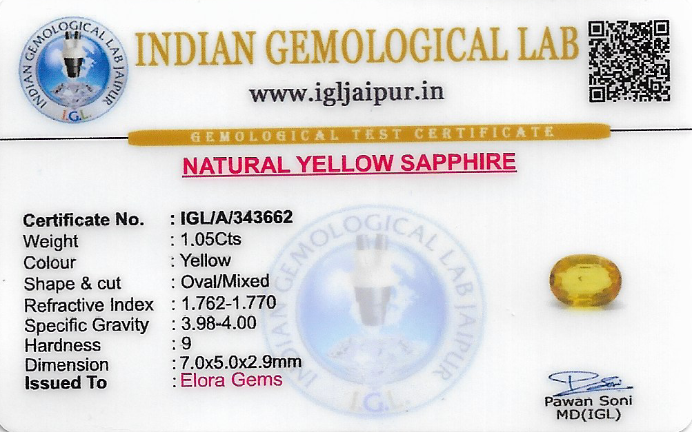 Natural Yellow Sapphire (Pushparag) weighing 1.05 carats In Oval from Thailand