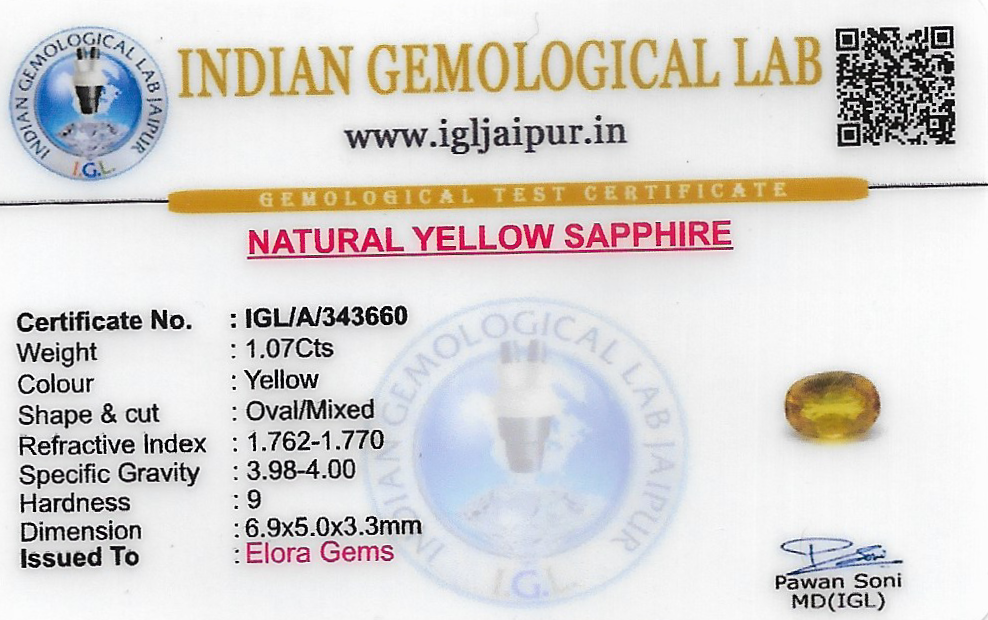 Natural Yellow Sapphire (Pushparag) weighing 1.07 carats In Oval from Thailand