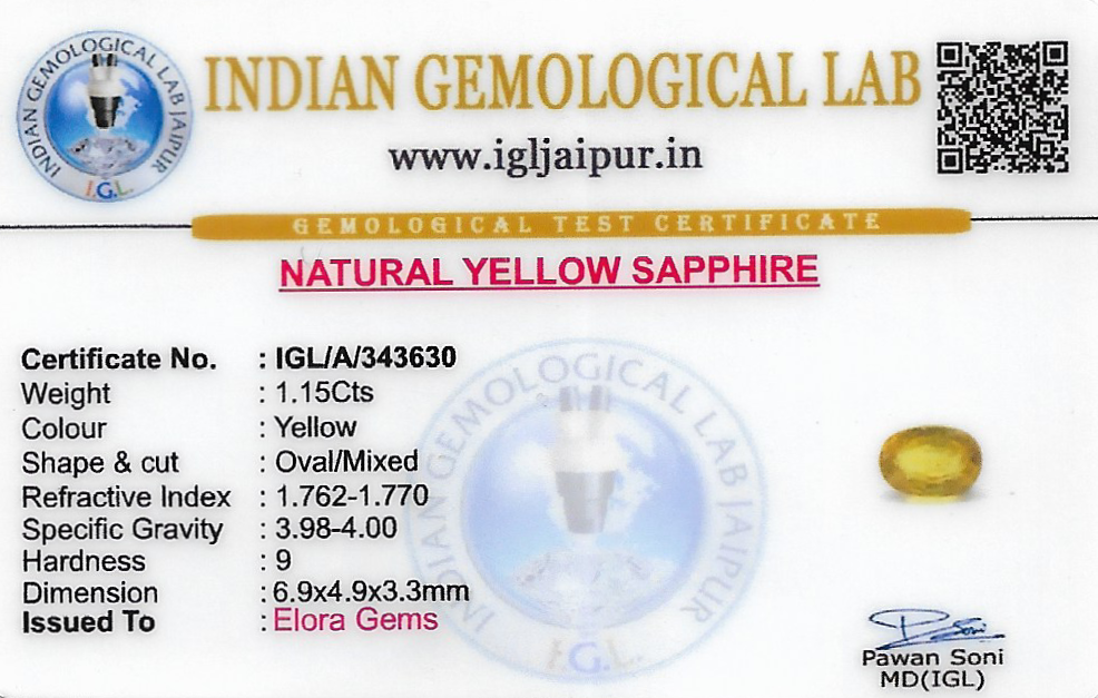 Natural Yellow Sapphire (Pushparag) weighing 1.15 carats In Oval from Thailand