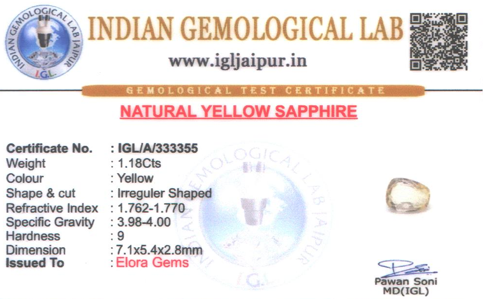 Natural Yellow Sapphire (Pushparag) weighing 1.18 carats In Unshaped from Sri Lanka (Ceylon)