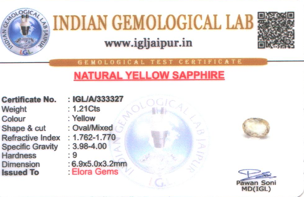 Natural Yellow Sapphire (Pushparag) weighing 1.21 carats In Oval from Sri Lanka (Ceylon)