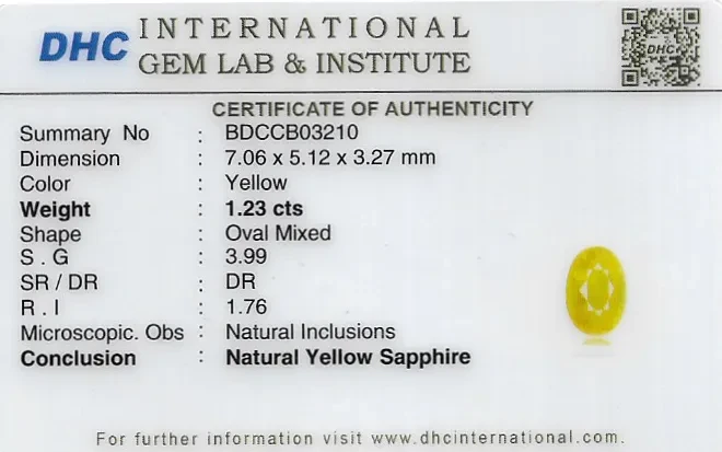 Natural Yellow Sapphire (Pushparag) weighing 1.23 carats In Oval
