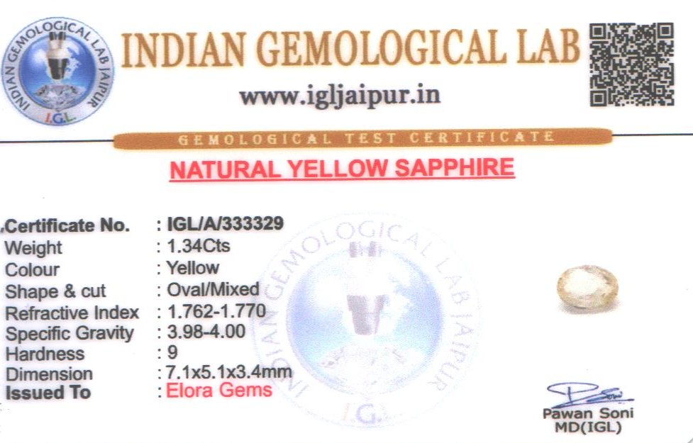 Natural Yellow Sapphire (Pushparag) weighing 1.34 carats In Oval from Sri Lanka (Ceylon)