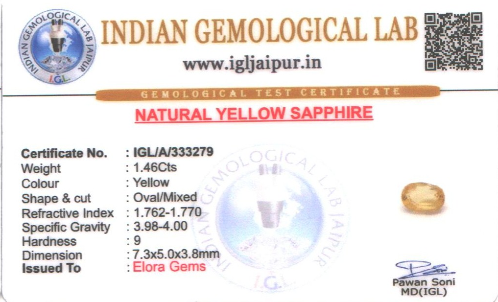 Natural Yellow Sapphire (Pushparag) weighing 1.46 carats In Oval from Sri Lanka (Ceylon)