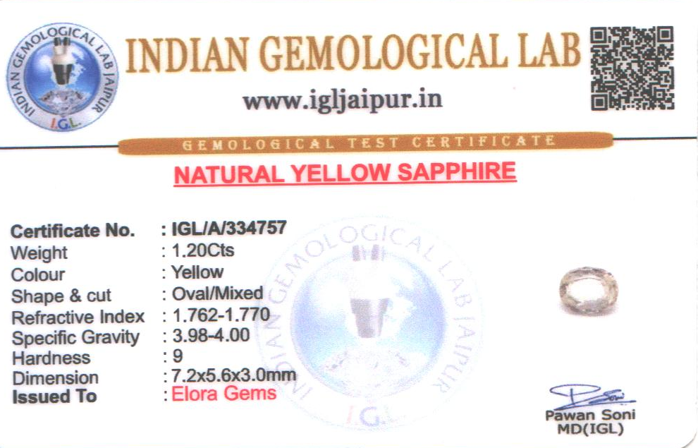 Natural Yellow Sapphire (Pushparag) weighing 1.2 carats In Oval from Sri Lanka (Ceylon)