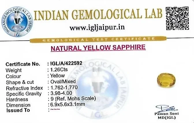 Natural Yellow Sapphire (Pushparag) weighing 1.26 carats In Oval from Thailand