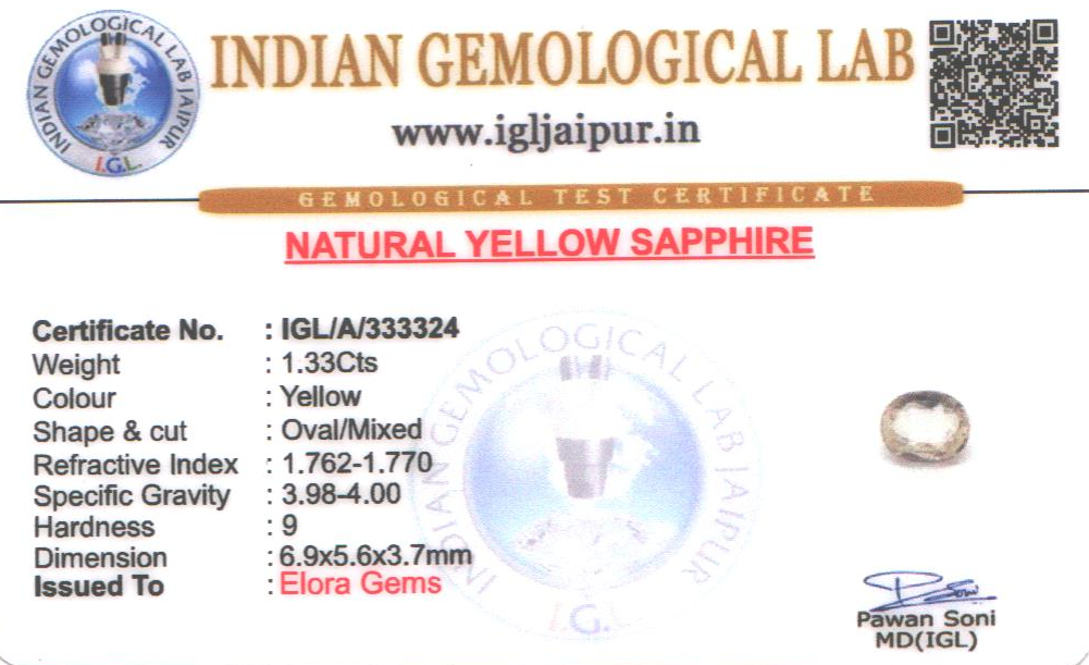 Natural Yellow Sapphire (Pushparag) weighing 1.33 carats In Oval from Sri Lanka (Ceylon)