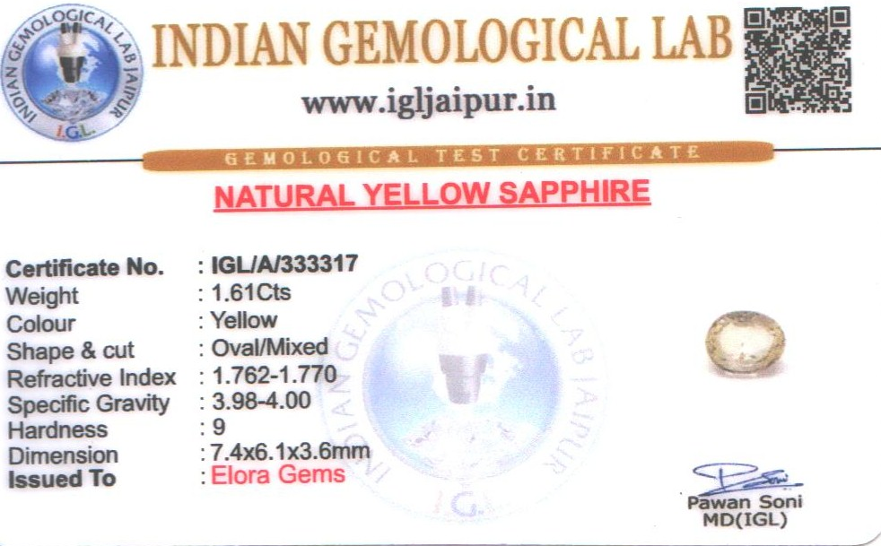 Natural Yellow Sapphire (Pushparag) weighing 1.61 carats In Oval from Sri Lanka (Ceylon)