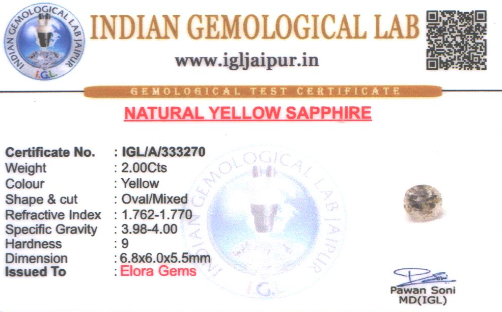 Natural Yellow Sapphire (Pushparag) weighing 2 carats In Oval from Sri Lanka (Ceylon)