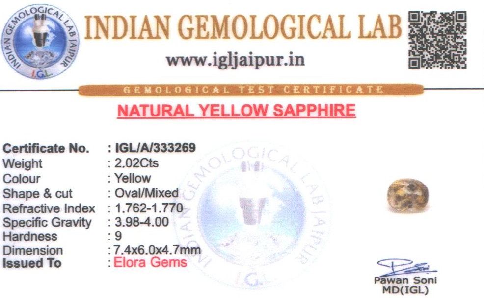 Yellow Sapphire (Pushparag) 7x6 MM 2.02 carats