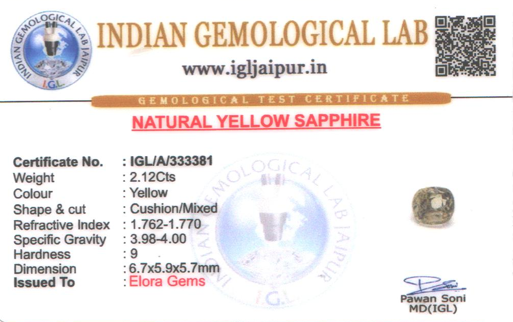 Natural Yellow Sapphire (Pushparag) weighing 2.12 carats In Cushion from Sri Lanka (Ceylon)