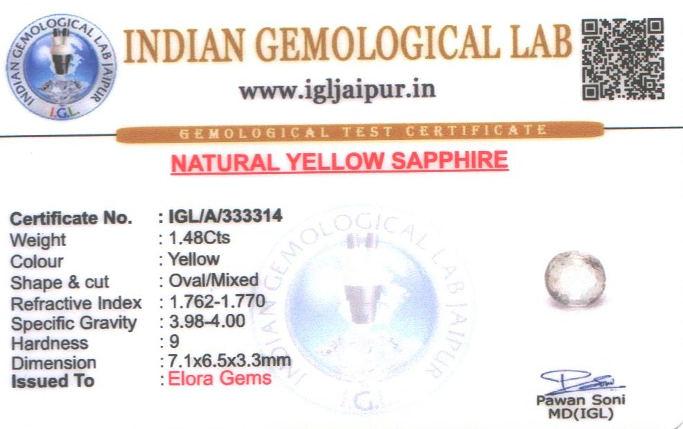 Natural Yellow Sapphire (Pushparag) weighing 1.48 carats In Oval from Sri Lanka (Ceylon)