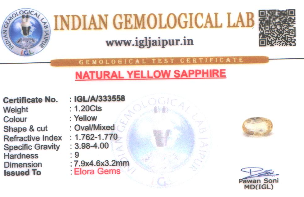 Natural Yellow Sapphire (Pushparag) weighing 1.2 carats In Oval from Sri Lanka (Ceylon)