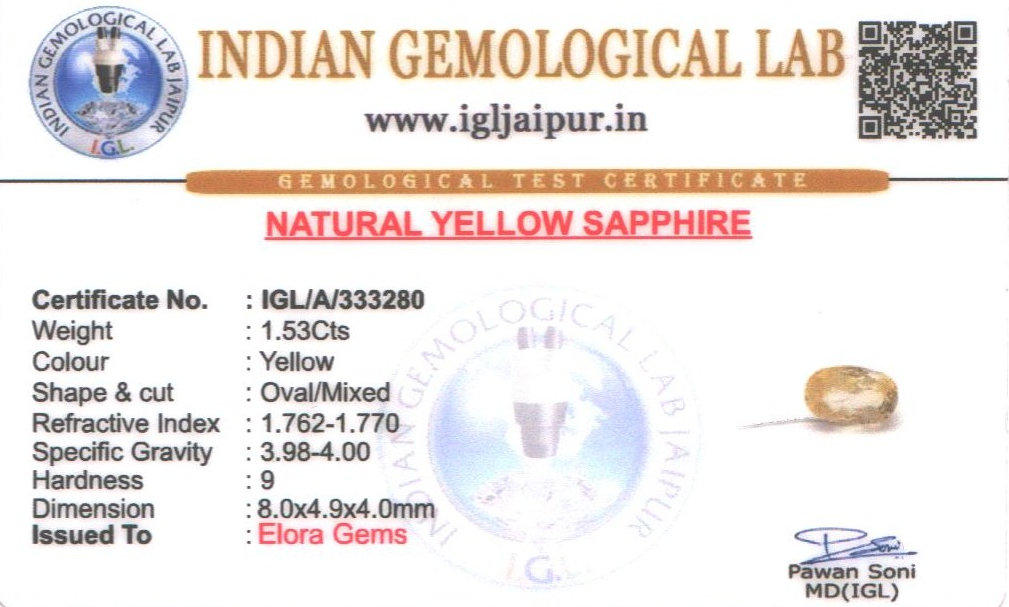 Natural Yellow Sapphire (Pushparag) weighing 1.53 carats In Oval from Sri Lanka (Ceylon)