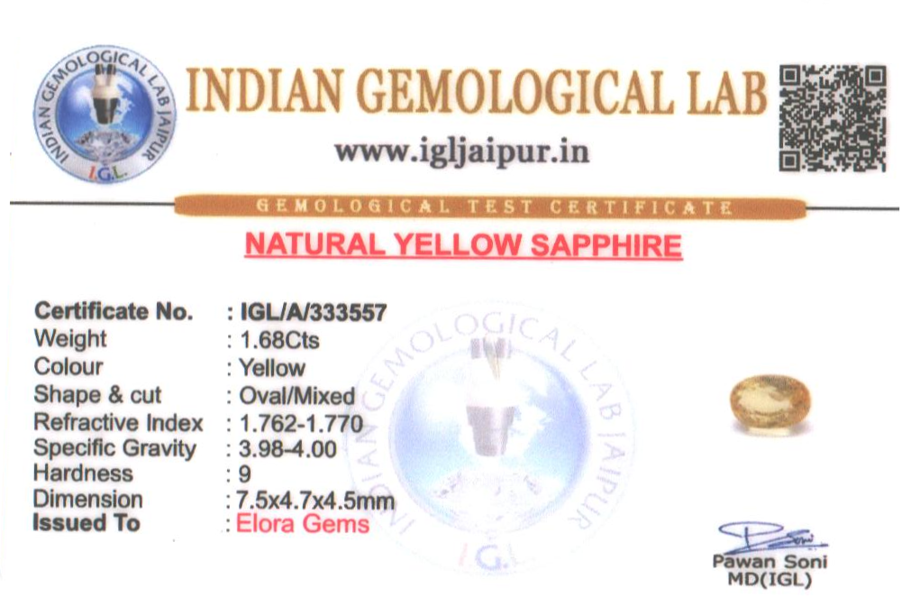 Natural Yellow Sapphire (Pushparag) weighing 1.68 carats In Oval from Sri Lanka (Ceylon)