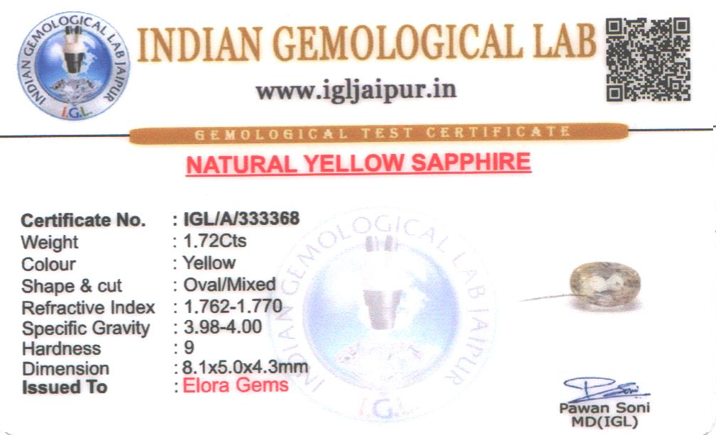 Natural Yellow Sapphire (Pushparag) weighing 1.72 carats In Oval from Sri Lanka (Ceylon)